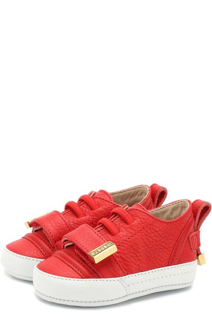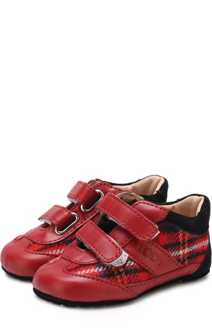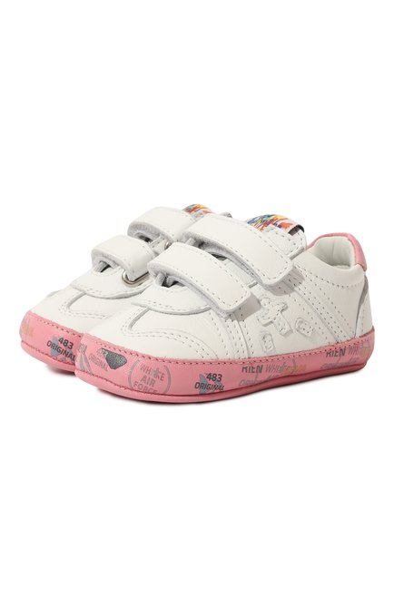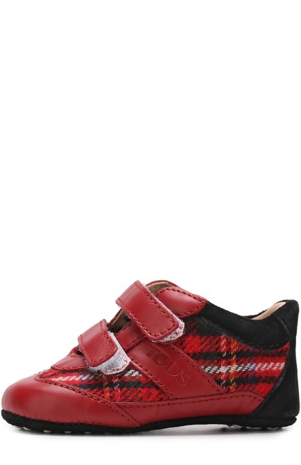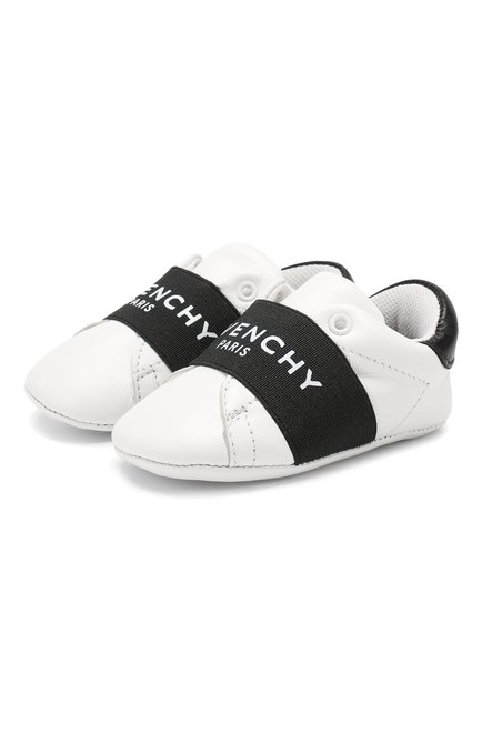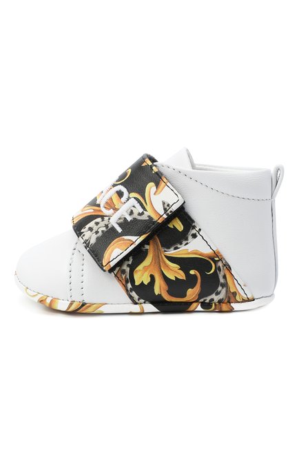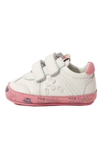 Кожаные пинетки с застежками велькро и текстильной отделкой