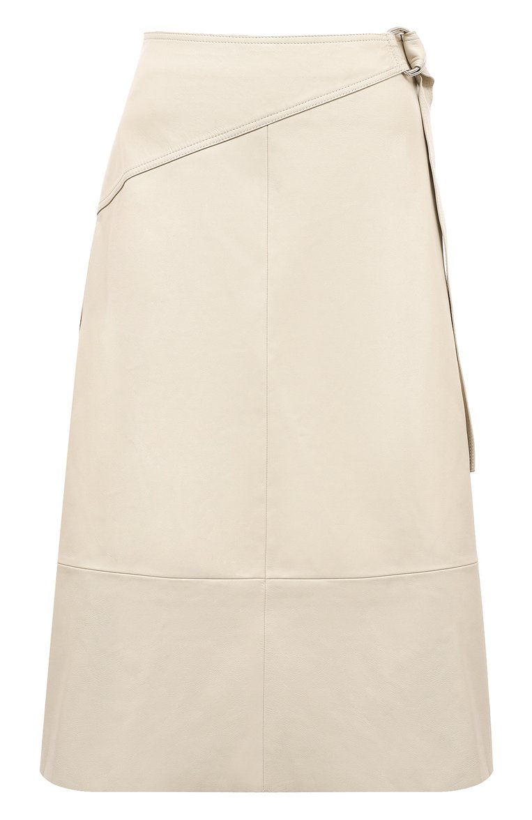 Команда марки, основанной Григорием Саломоном, вывела юбку-трапецию на новый уровень комфорта и практичности. Вместо привычной ткани для пошива модели кремового оттенка использовали нежную тонкую кожу ручной выделки. Материал хорошо держит заданную кроем форму и не вытягивается, поэтому изделие с поясом, продетым в D-образную пряжку, будет долго выглядеть безупречно.