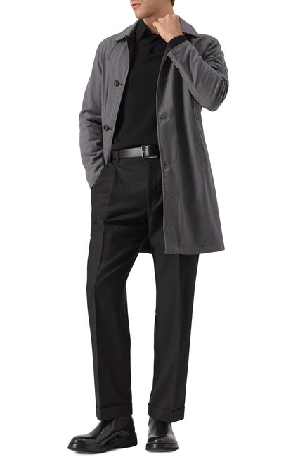 Черное лаконичное поло без декора сможет заменить рубашку для офиса с нестрогим дресс-кодом. Для создания модели с отложным воротником и длинными рукавами мастера марки использовали мягкую шерстяную пряжу. Ее туго скрутили из тончайших волокон, поэтому изделие почти ничего не весит, приятно ощущается на коже и поддерживает оптимальный микроклимат.